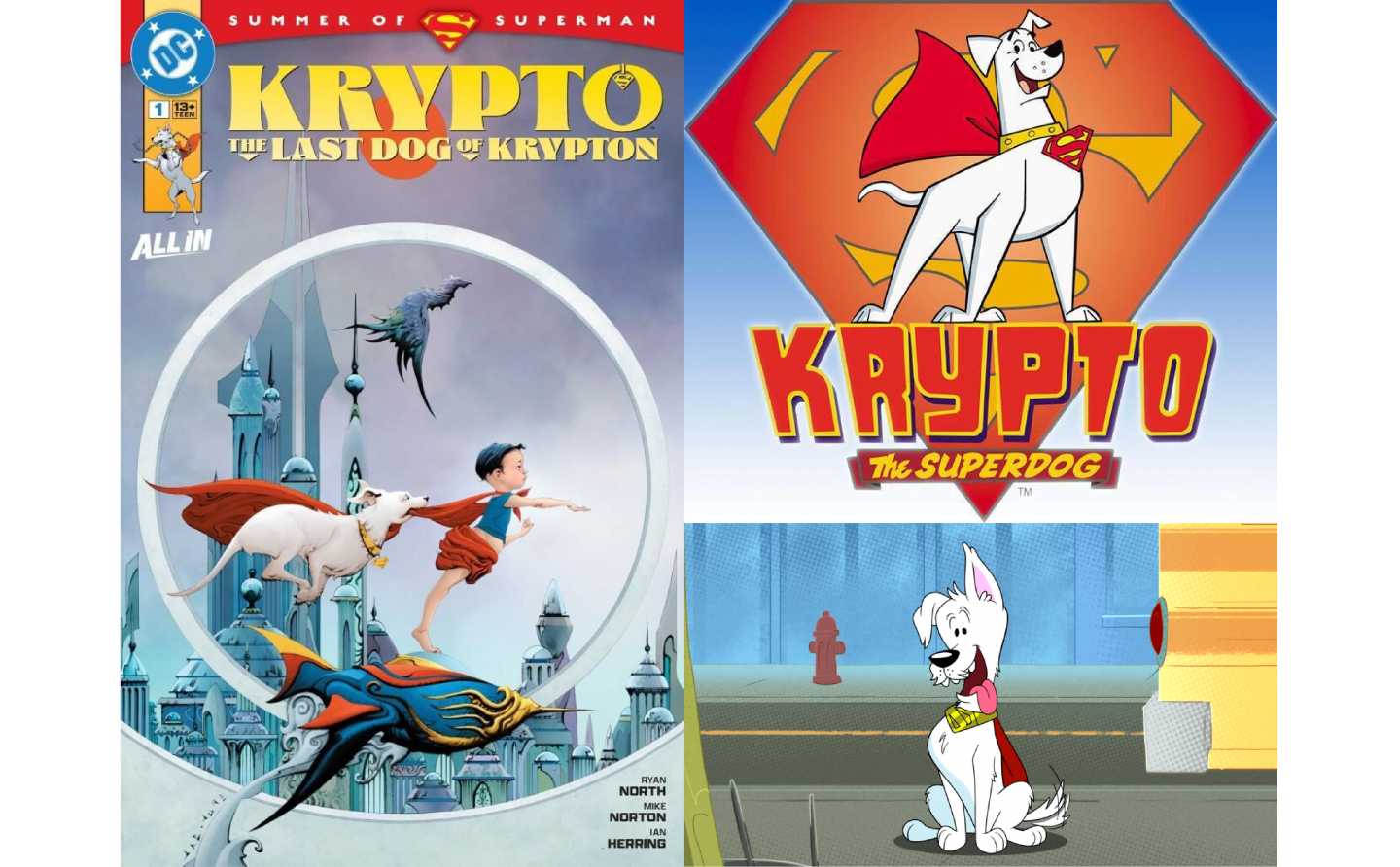 然而,這部作品最值得探討的,是它在美學風格上的策略性選擇。《氪普托拯救世界!》中的主角造型,顛覆了過往觀眾的既定印象。相較於2005年華納動畫《超級狗氪普托》影集中那隻線條流暢、風格經典的氪普托,新版本的牠顯得更為毛茸茸、充滿幼犬的稚氣,其外觀幾乎是真人電影中那隻氪普托的直接動畫化。這種視覺上的高度統一,明確傳達了一個訊息:即便故事非正史,但在品牌形象上,DC正全力打造一個跨媒體的、高度一致的《超人》家族IP。這種做法不僅鞏固了真人電影的角色設定,也讓動畫成為了最好的周邊廣告。