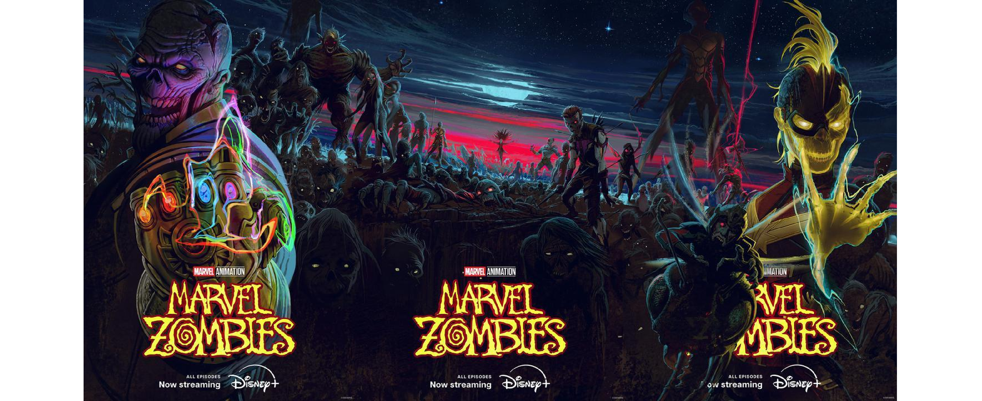 在MCU R級動畫影集《漫威喪屍》(Marvel Zombies)憑藉強勁收視大獲成功之後,漫威工作室趁勢推出了一款創意十足、充滿史詩感的「三聯幅」巨型海報。這款海報不僅完美呈現了末日狂歡的視覺盛宴,其構圖與設計理念更充分展現了漫威品牌的自信與風采。
