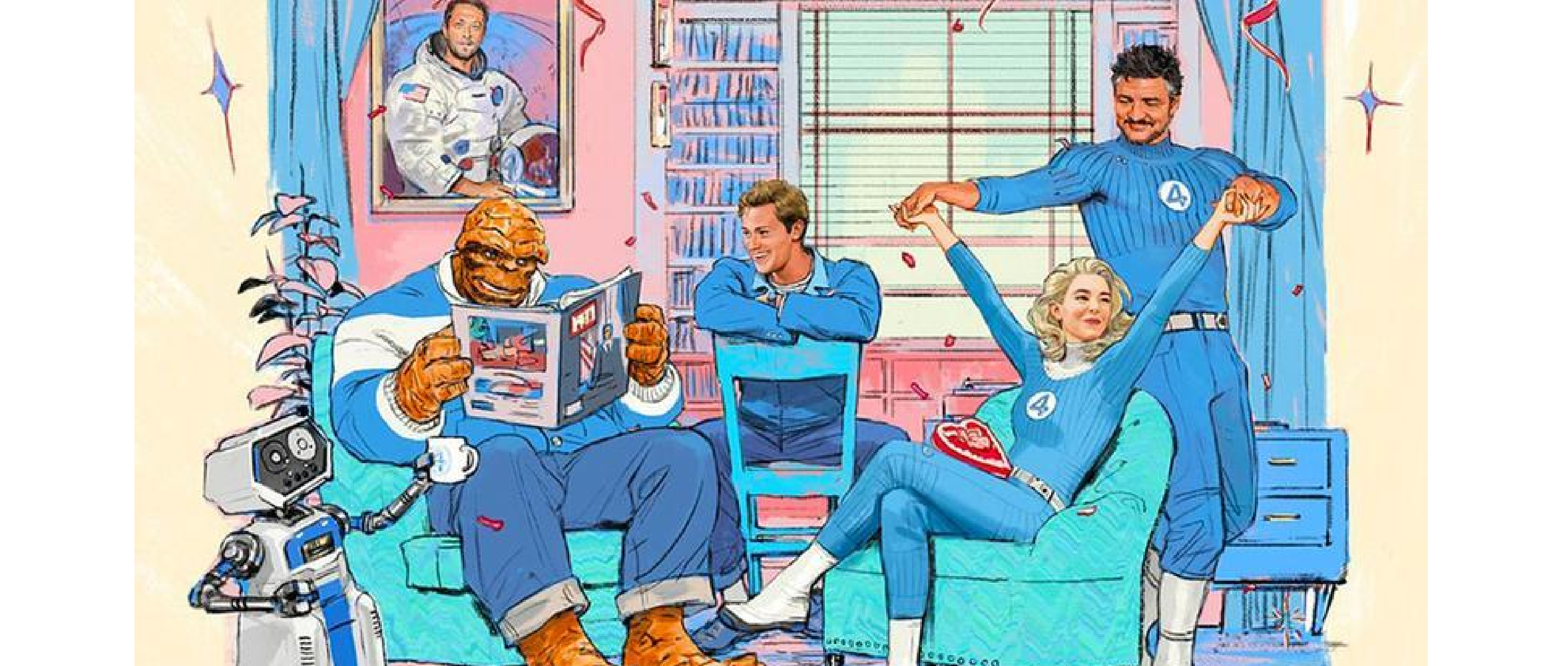 這支由Disney+官方社群平台發布的預告片,形式別具巧思。它並非傳統的電影片段剪輯,而是採用「投影幻燈片」的獨特美學風格。這種帶有斑駁復古質感的呈現方式,完美呼應了《驚奇四超人:第一步》備受讚譽的1960年代復古未來主義風格。