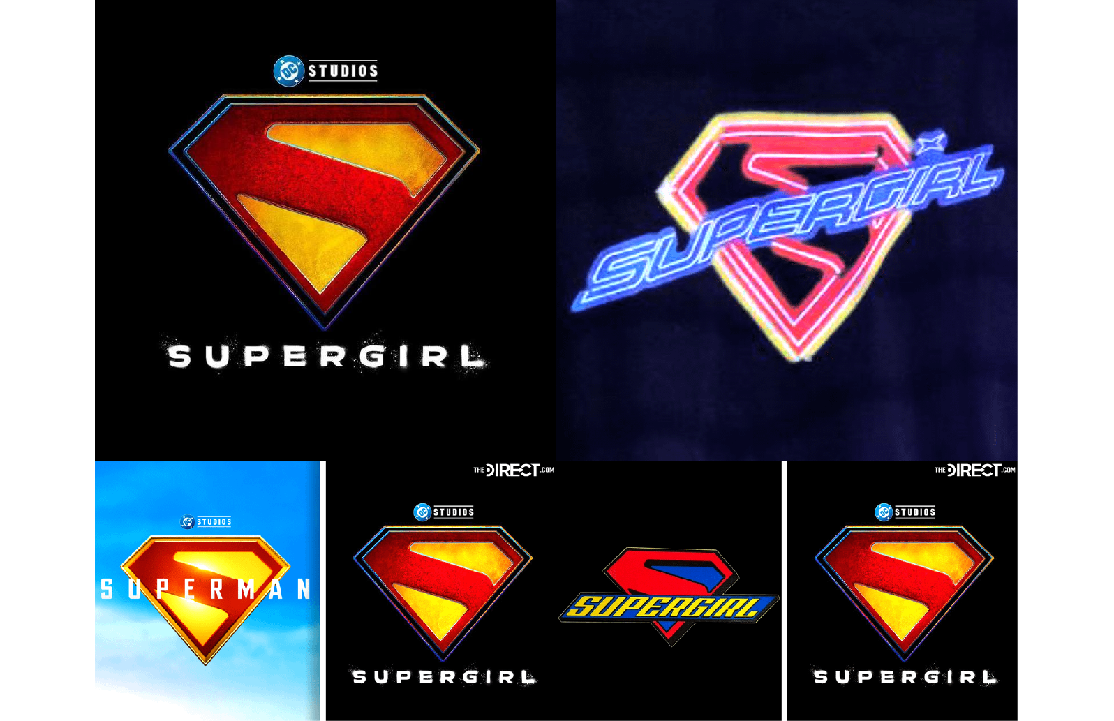 這看似簡單的色彩轉換,卻精準地傳達出卡拉·佐-艾爾與她表弟截然不同的命運。超人嬰兒時來到地球,對氪星的毀滅毫無記憶;而卡拉則在少女時期目睹家園崩塌、親友慘死,漂流太空多年後才抵達地球。黑色邊框象徵她內心深處的創傷、哀悼與孤獨,宛如一座墓碑,時刻提醒她失去的一切。這與電影改編自湯姆·金漫畫《明日之女》的基調完美契合——一部關於創傷療癒與自我救贖的太空公路電影。官方同時釋出一款強烈霓虹復古風的備用Logo,採用80年代科幻與合成波風格的發光字體,暗示電影將呈現絢麗多彩、充滿異星風情的視覺盛宴。這種「經典史詩感」與「迷幻科幻感」並存,預示電影將在沉重情感的外衣下,包裹著娛樂性十足的冒險旅程。
