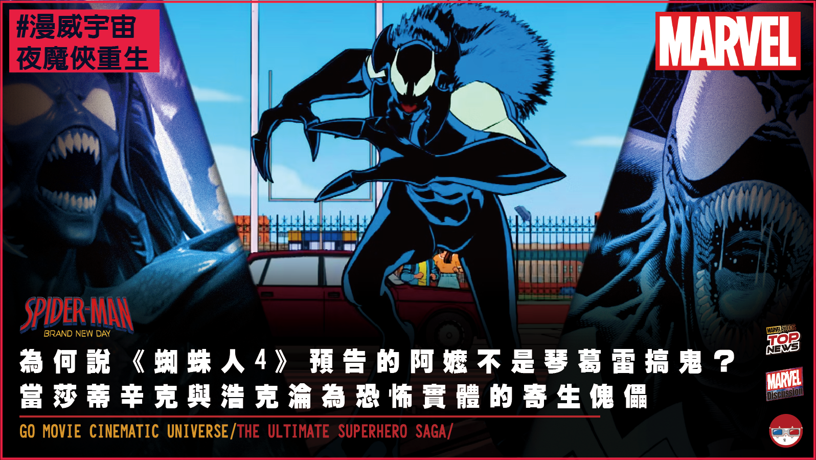 更關鍵的破綻在於預告片裡一閃而過的那群「紅色忍者」。如果這是一場變種人引發的災難,為什麼街頭會出現一群看起來像是在進行某種邪教崇拜的神秘忍者?這些紅衣刺客的行為充滿了宗教狂熱,他們明顯是在膜拜某種更高階、古老的存在。這直接把電影的調性從「變種人科幻大戰」拉向了「超自然神祕驚悚」。當大家都以為彼得·帕克要面對的是新一代的超級英雄或反派時,其實他真正要對抗的,是一個根本無法用拳頭打散的寄生惡靈!
