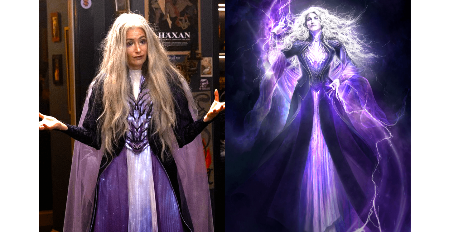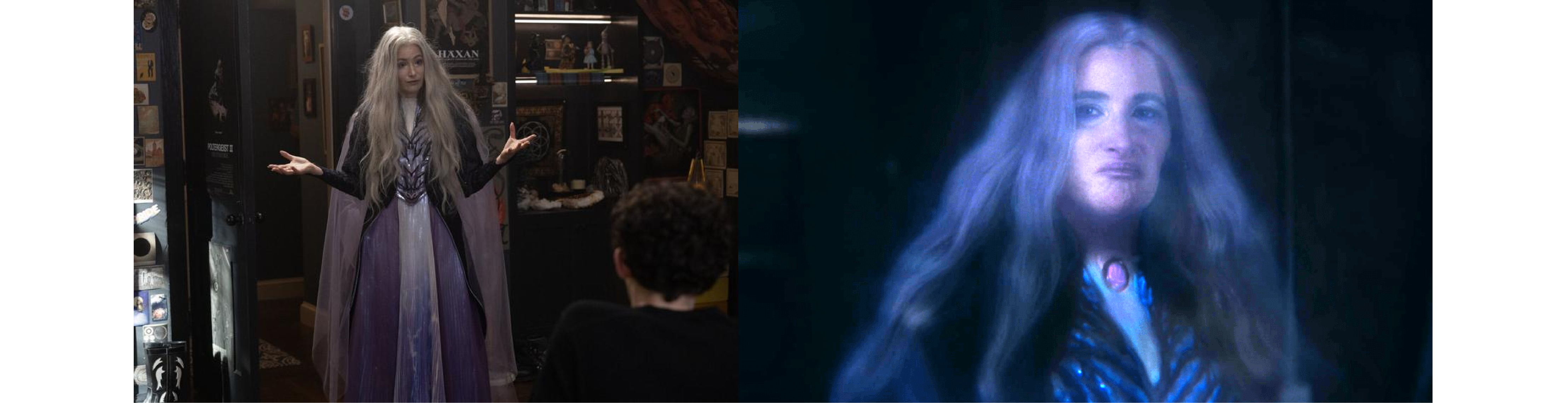 這組由《阿嘉莎》服裝設計師丹尼爾·塞隆(Daniel Selon)在其個人網站上發布的幕後照片,引發了全球漫威迷的熱烈討論。照片中,由凱薩琳·哈恩(Kathryn Hahn)飾演的阿嘉莎身著華麗的紫色長袍,一頭雪白的頭髮與強大的氣場完美結合,呈現出前所未有的視覺衝擊力。過去在影集中,她的幽靈形態總是被一層半透明的CGI特效所籠罩,如今清晰的劇照與概念藝術圖,讓觀眾能完整欣賞到這套精緻服裝的每一個細節,以及她手上迸發出的紫色混沌魔法與閃電弧光。這不僅是對服裝設計團隊專業的致敬,也讓觀眾得以從另一個角度,重新感受這位角色在施展魔法時的強大力量與視覺美感。