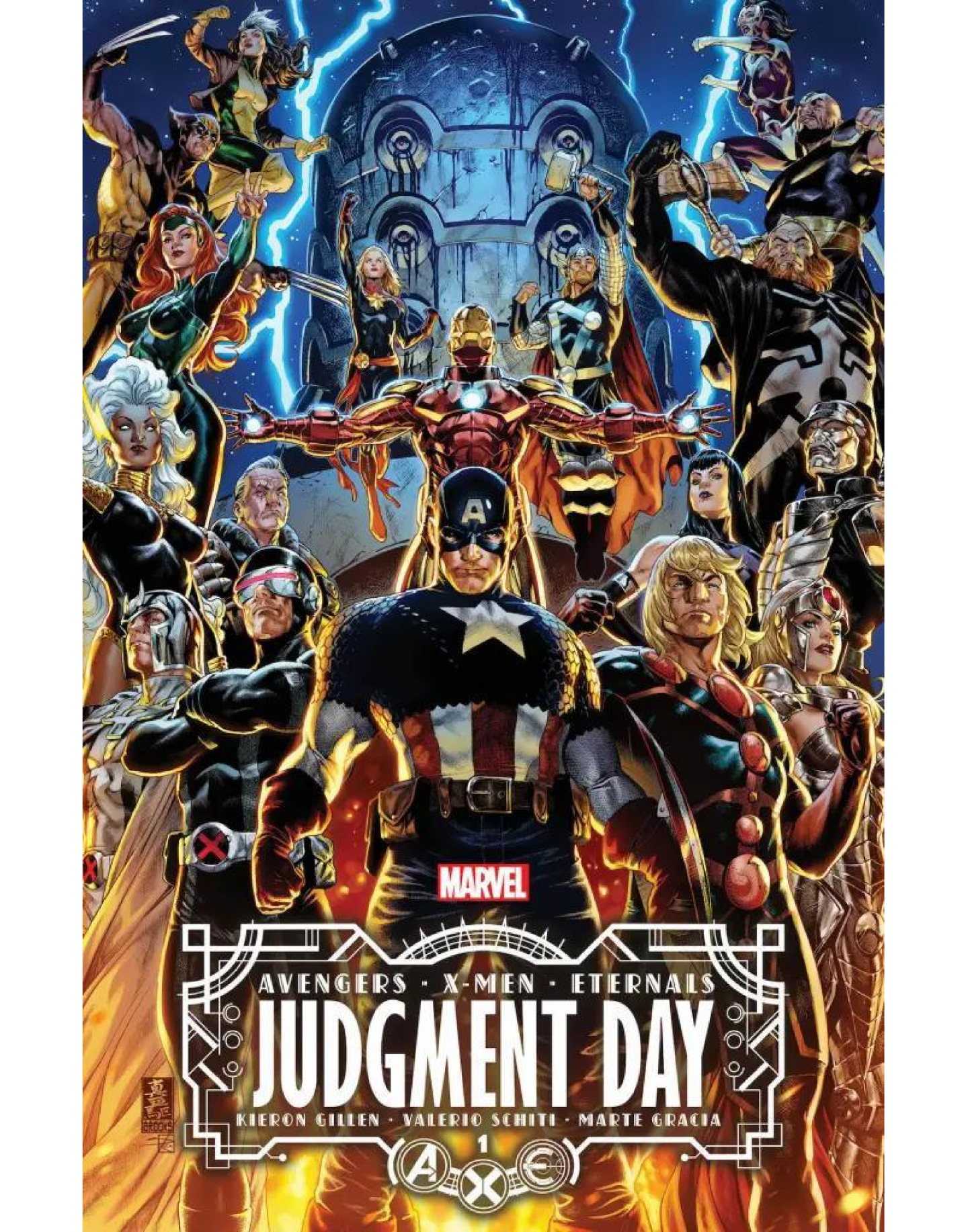 回溯漫畫歷史,《A.X.E. 審判日》(A.X.E. Judgment Day)是 2022 年漫威漫畫發行的一部重磅系列。故事描述變種人(X-Men)在地球上建立主導地位後,引發了與永恆族(Eternals)之間的激烈衝突。當兩大超級種族展開全面戰爭時,復仇者聯盟(Avengers)試圖介入調停,卻意外捲入其中,成為這場史詩級大亂鬥的第三方勢力。這場三方混戰,不僅考驗著英雄們的信念,也揭示了各自種族深層的矛盾與分歧。