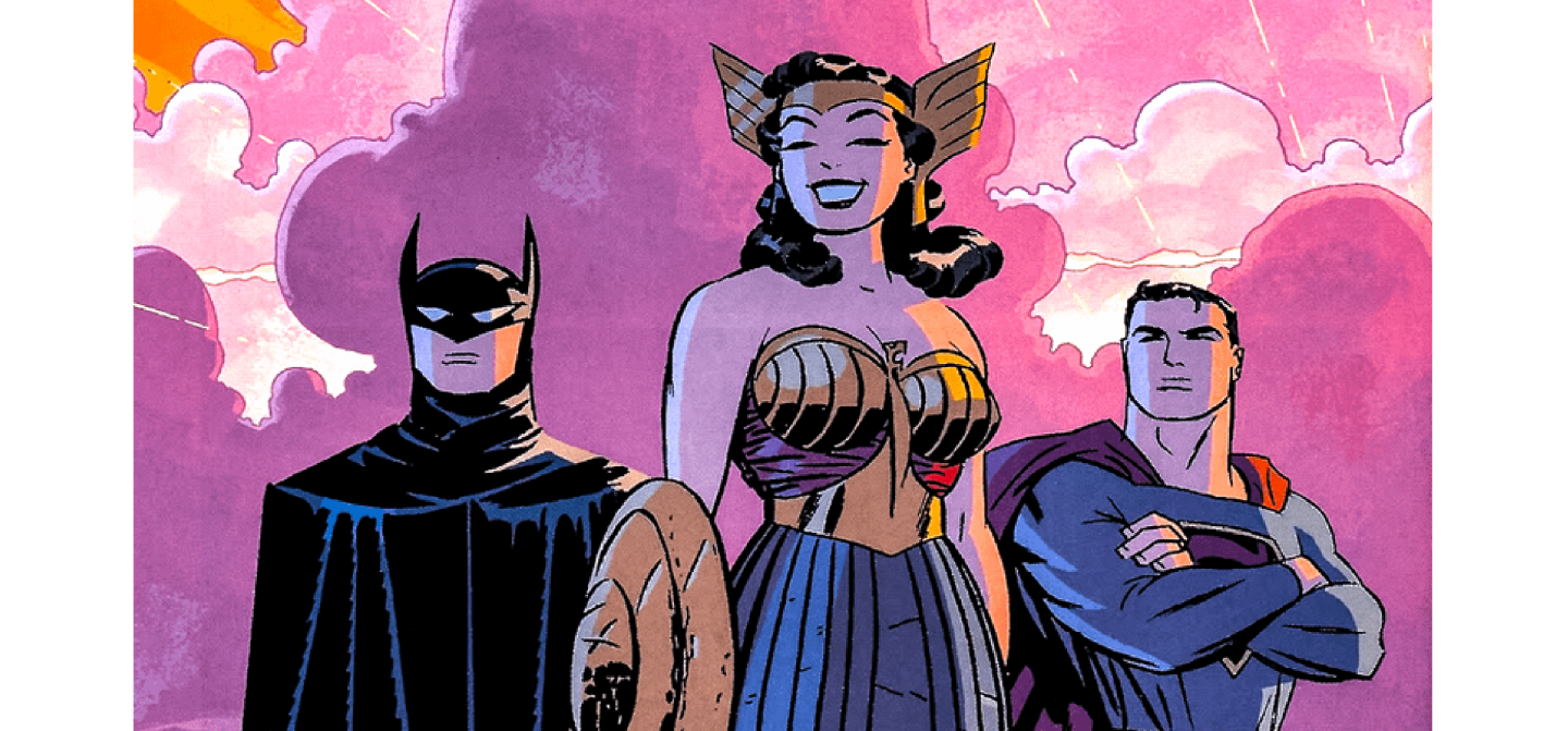 最後要介紹的是達溫·庫克(Darwyn Cooke)的作品《DC:新邊際》(DC: The New Frontier)。故事背景設定在1945年至1960年間,巧妙融合了冷戰政治、麥卡錫主義以及超級英雄的誕生。若要將這部帶有濃厚「時代劇」色彩的作品納入DC宇宙,難度相當高,除非將DC宇宙的起源時間調整至1960年代(類似《X戰警:第一戰》),否則很難合理解釋英雄們突然出現在二戰後的時代背景中。書中探討的政治議題,例如神力女超人以激烈手段推動女性解放,對現代好萊塢來說可能過於敏感。雖然其藝術風格令人驚艷,但與現代商業大片的節奏不太契合,因此注定只能停留在動畫改編的層次。