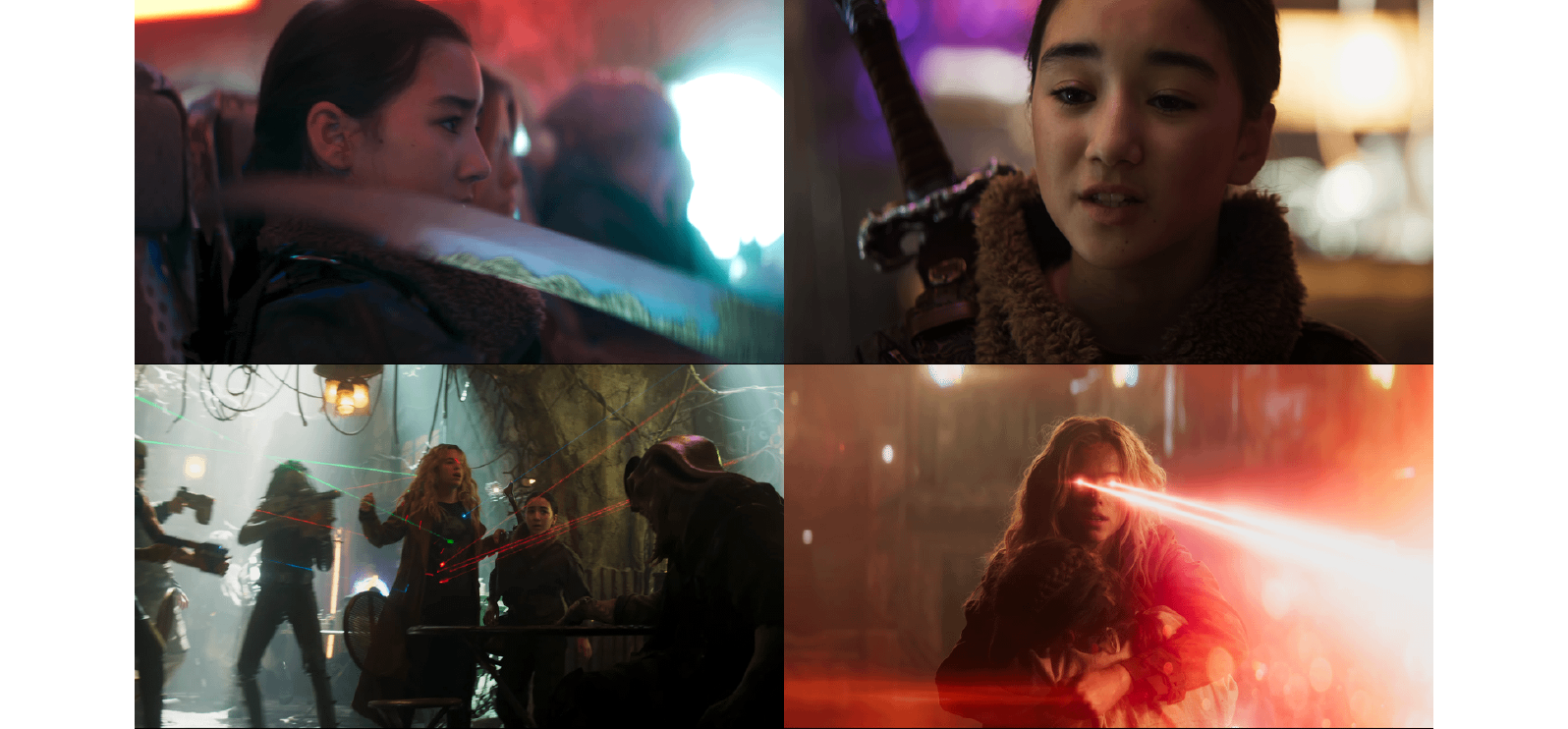 * 1:06處:卡拉與露絲被太空海盜傭兵包圍,露絲眼神堅定,絕非普通需要被保護的孩子。