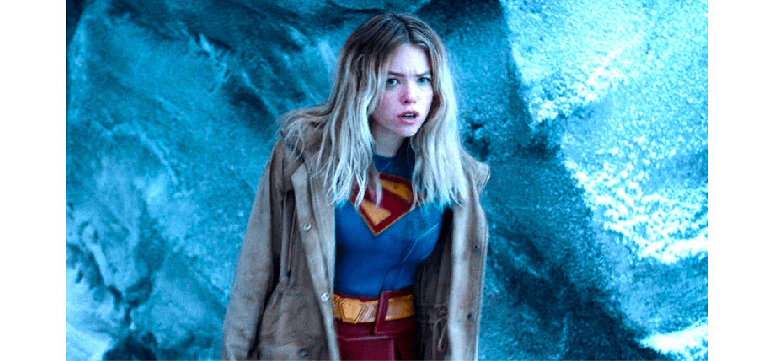 這看似簡單的色彩轉換,卻精準地傳達出卡拉·佐-艾爾與她表弟截然不同的命運。超人嬰兒時來到地球,對氪星的毀滅毫無記憶;而卡拉則在少女時期目睹家園崩塌、親友慘死,漂流太空多年後才抵達地球。黑色邊框象徵她內心深處的創傷、哀悼與孤獨,宛如一座墓碑,時刻提醒她失去的一切。這與電影改編自湯姆·金漫畫《明日之女》的基調完美契合——一部關於創傷療癒與自我救贖的太空公路電影。官方同時釋出一款強烈霓虹復古風的備用Logo,採用80年代科幻與合成波風格的發光字體,暗示電影將呈現絢麗多彩、充滿異星風情的視覺盛宴。這種「經典史詩感」與「迷幻科幻感」並存,預示電影將在沉重情感的外衣下,包裹著娛樂性十足的冒險旅程。