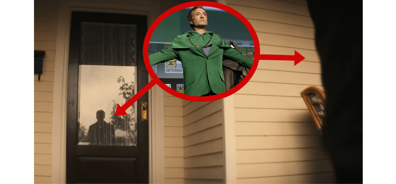 更詭異的是門上玻璃的模糊倒影。經過國外大神影像增強分析,那反射出的髮型與輪廓,根本不像史蒂夫那種乾淨俐落的大兵頭,反倒更接近東尼·史塔克(Tony Stark)或維克多·馮·杜姆那種略帶捲度的造型。這意味著什麼?這場戲根本不是「老友回家」,而是「惡魔敲門」!想像一下,若開門的是年邁的佩姬·卡特,門外站的卻是擁有鋼鐵人面孔的末日博士,這見面禮未免太過殘酷!漫威這波操作,簡直是把「情懷刀」狠狠插進粉絲心臟的最深處。