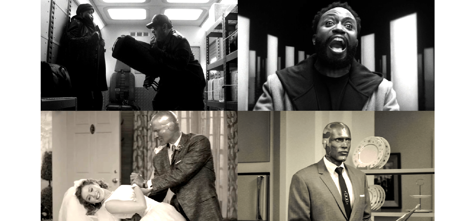 阿哥,我只能說,漫威高層這次終於想通了,將《汪達幻視》當年最成功的視覺魔術完美移植到《神力人》這部街頭神劇上!回顧五年前,伊莉莎白·歐森飾演的汪達·麥西莫夫為逃避現實創傷,以黑白情境喜劇包裝虛假的烏托邦。而這次《神力人》同樣利用黑白畫面的抽離感,在視覺上與男主角賽門·威廉斯的現代主線做出完美切割。更透過缺乏色彩的冰冷調性,強烈暗示超級英雄在鎂光燈下被當成免洗噱頭,最終慘遭拋棄的殘酷現實。這種不靠台詞、僅憑畫面色彩就能剝奪觀眾安全感的神級敘事手法,再次證明漫威只要認真講故事,絕對能端出讓人頭皮發麻的頂級藝術品!